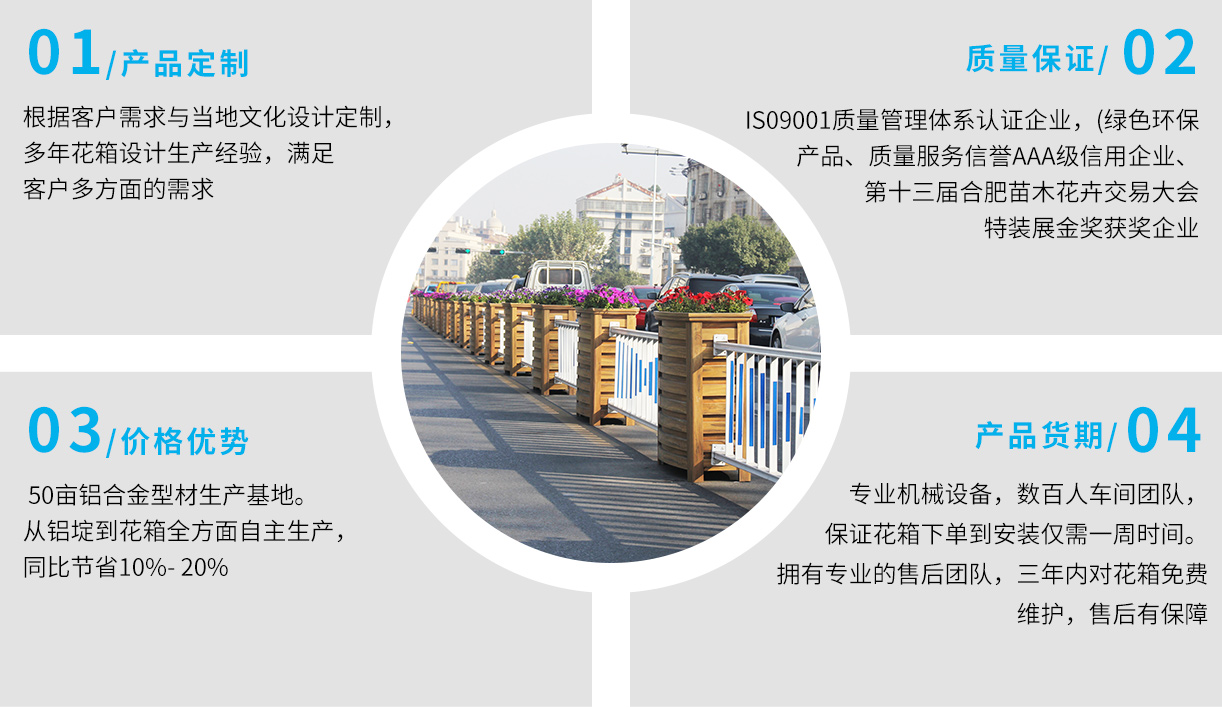 •       上海曦信環(huán)保科技股份有限公司成立于2013年,是一家專業(yè)的馬路花箱供應(yīng)商。本公司自成立以來(lái),經(jīng)歷了奠定基礎(chǔ),穩(wěn)步發(fā)展的過(guò)程。品牌已形成市場(chǎng)優(yōu)勢(shì),現(xiàn)正處于乘勢(shì)而上發(fā)展壯大的階段。創(chuàng)立先進(jìn)的經(jīng)營(yíng)理念和企業(yè)文化,生產(chǎn)經(jīng)營(yíng)規(guī)模不斷發(fā)展壯大。公司主要從事馬路花箱,花箱護(hù)欄,木紋鋁合金花箱,座椅花箱,鋁板花箱、不銹鋼花箱、鋁合金護(hù)欄、鋁合金葡萄架,公園座椅,戶外果皮箱垃圾桶、鋁合金葡萄架等金屬建材產(chǎn)品的生產(chǎn)和銷售...